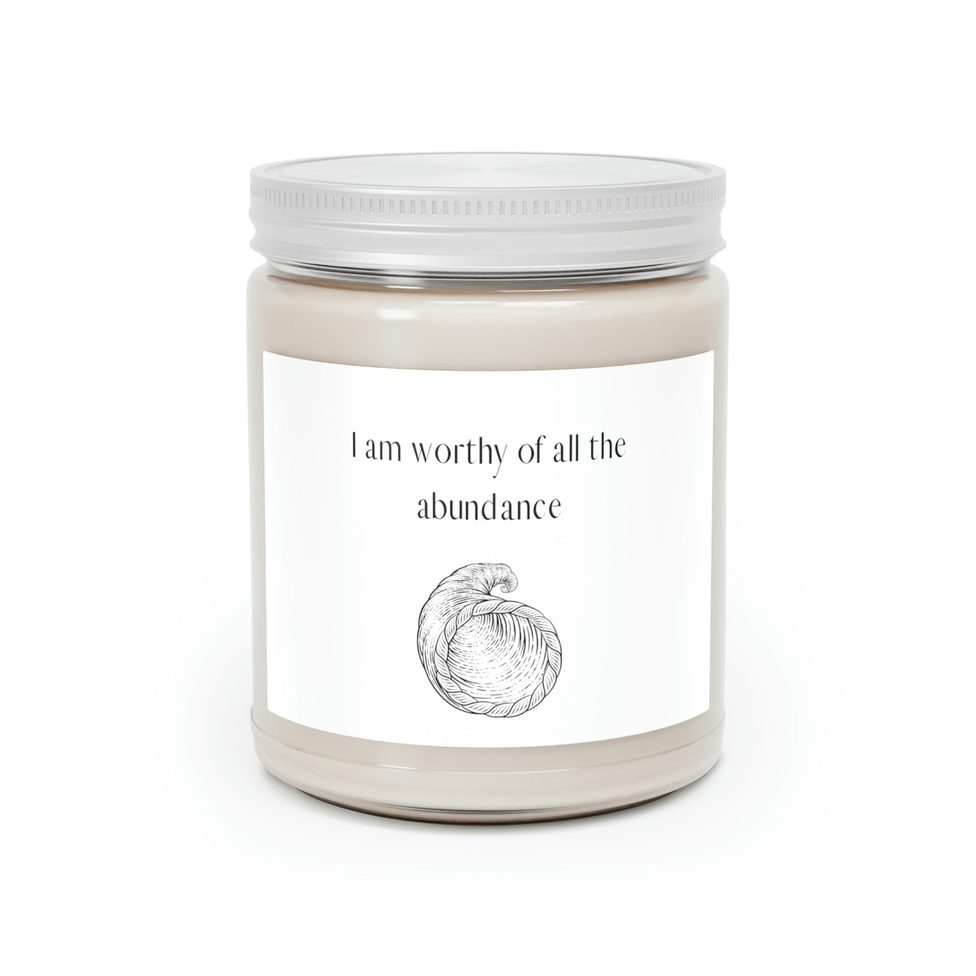 Embrace your worthiness and invite abundance into your life with our empowering scented candle - 'I am worthy of all the abundance'.