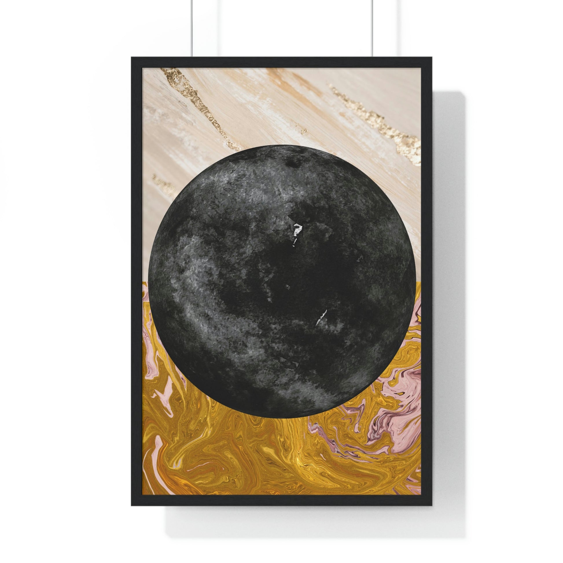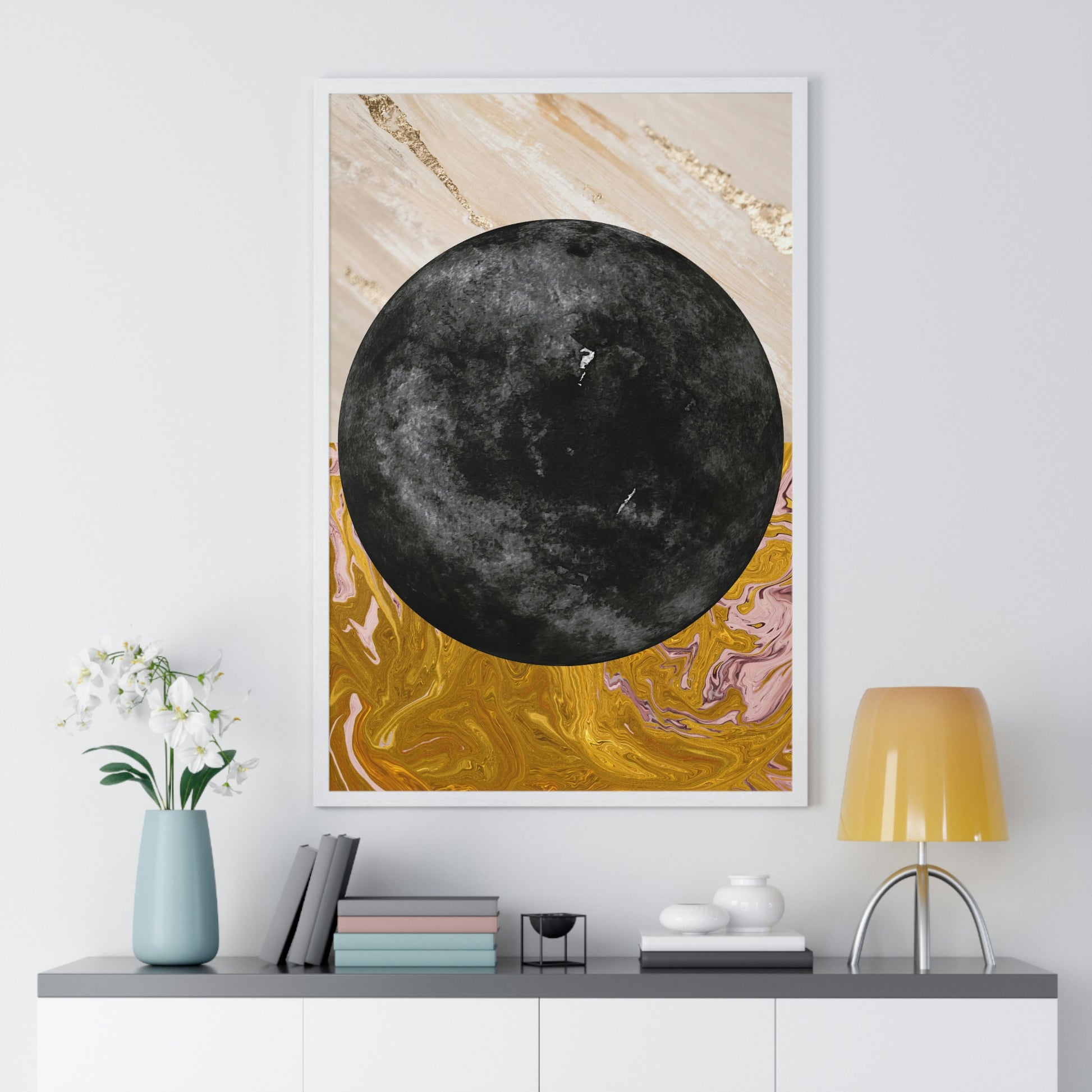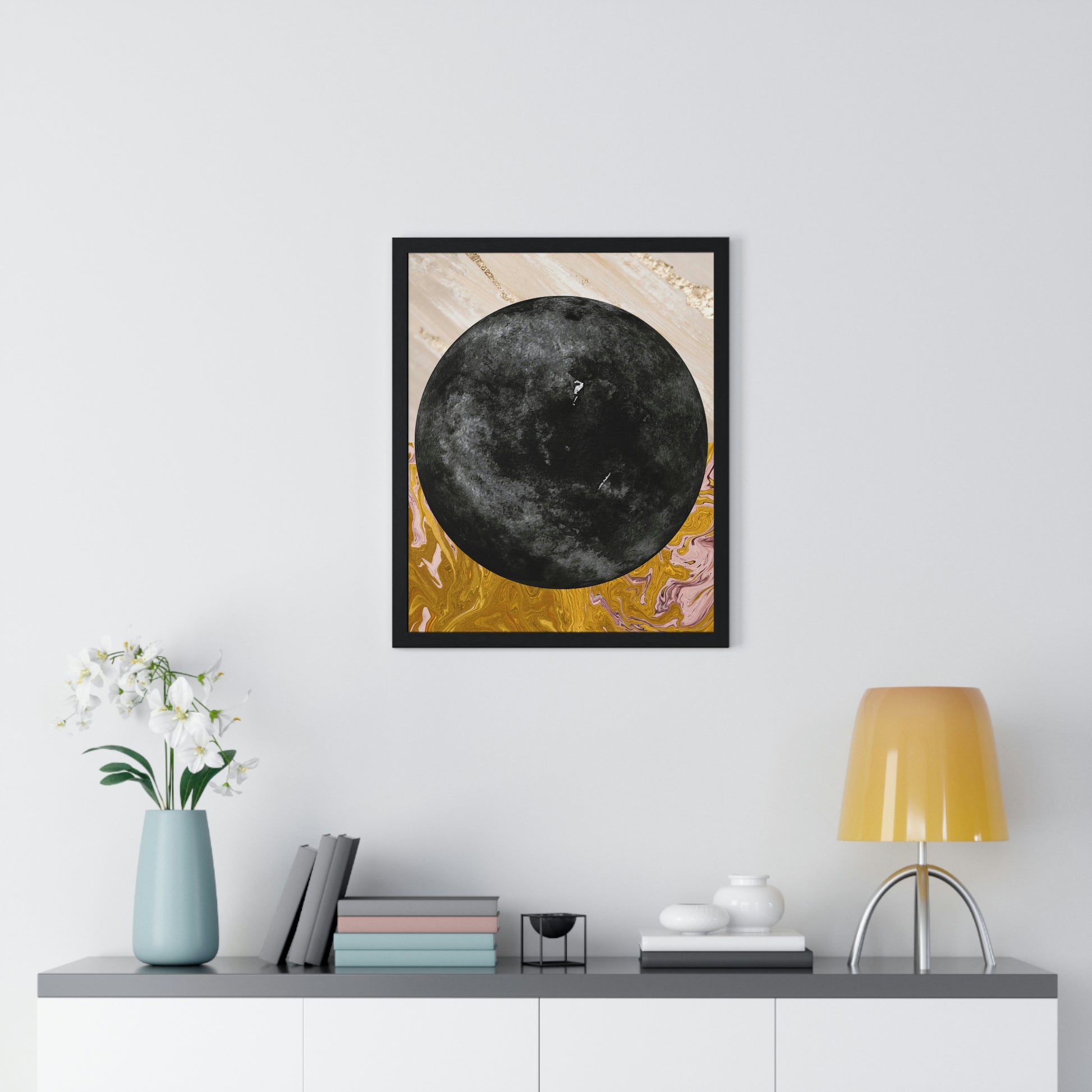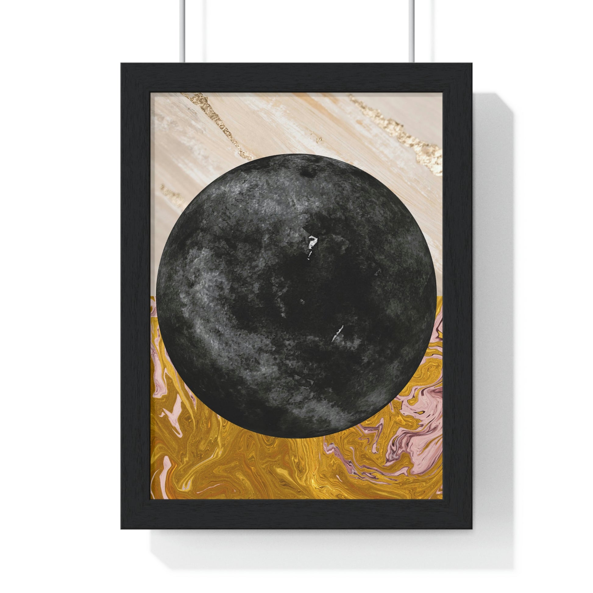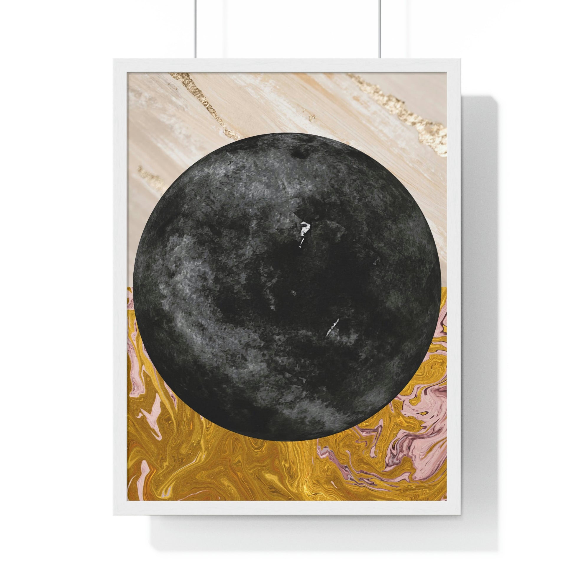 Welcome the power of new beginnings with this contemporary framed poster featuring the new moon.